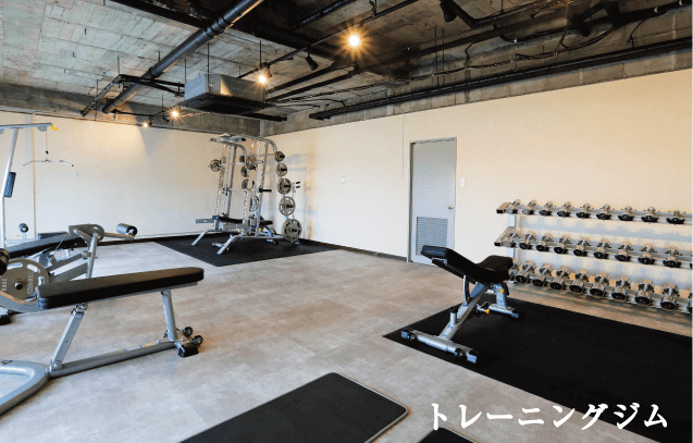 ウェイトトレーニングをメインとしたスポーツジムを完備。